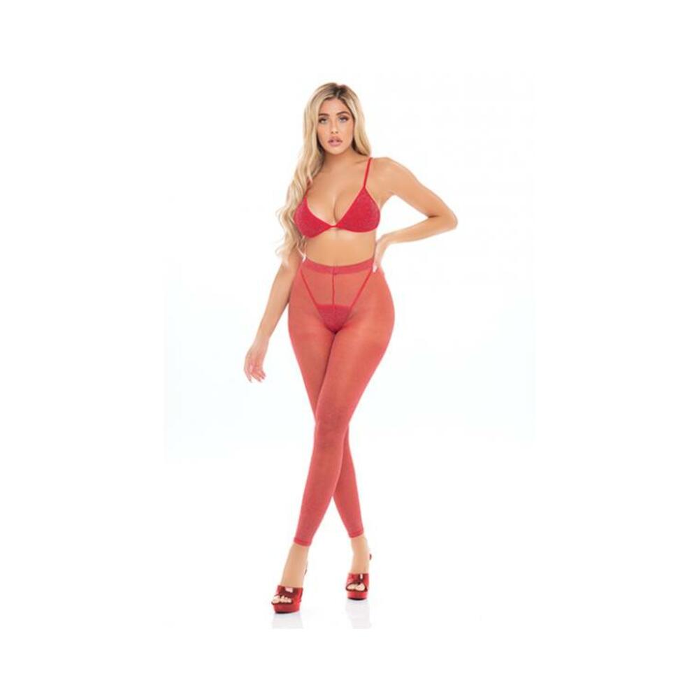 Pink Lipstick Tall Order Bra Top & Leggings Red O/s