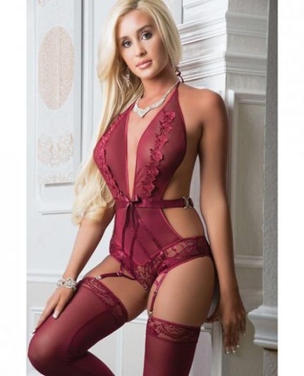 Plunging Halter Teddy W/stockings – Ultramarine Green O/s