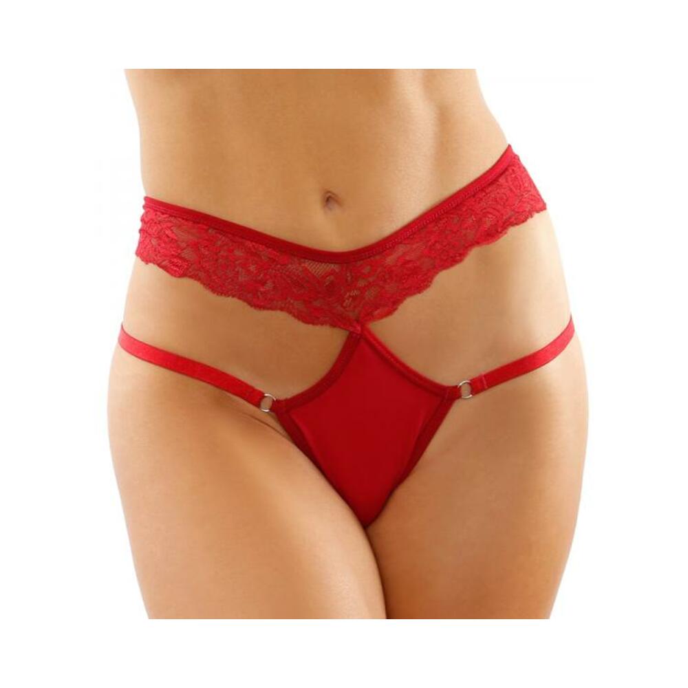 Heart Stretch Lace Panty W/open Crotch Red Md