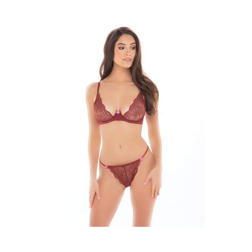 Rene Rofe Staying In Bra Top & Thong Burgundy S/m