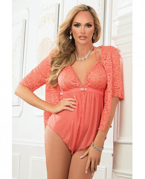 Romper W/snap Open Crotch & Laced Robe Vibrant Orange O/s