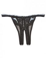 Scalloped Embroidery Crotchless Thong Panty from Shirley of Hollywood. Black color. One size fits most.