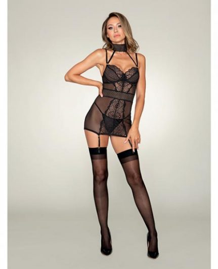 Scalloped Stretch Lace Garter Slip & G-string Black Xl