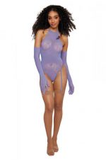 Seamless Garter Teddy with Gloves Set Wisteria O/S from Dreamgirl Lingerie. Seamless garter teddy with matching gloves set. Delicate knitted lace pattern with solid knitted waist corset illusion design. Halter neck with adjustable ties and attached, adjustable garters. Please note shown with Style DG0192 thigh high stockings, not included. Sold separately. Categories: Lingerie, Clothing, Naughty Role Play, Teddies. Restricted, Amazon Restricted. 2023.