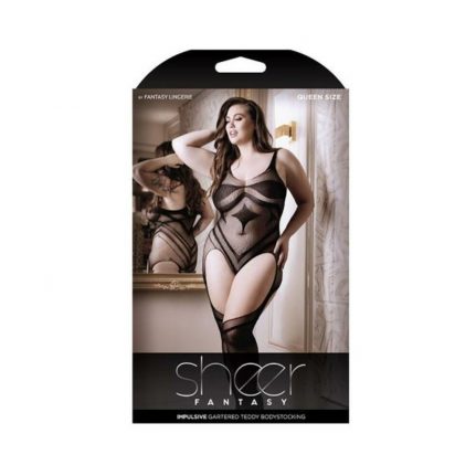 High-Waist Lace Suspender Stockings with Stud Detail Brand: Sheer Fantasy Materials: 90% Nylon 10% Spandex Color: Black O/S: Size: 2-12 Bust: 32″-38″ Hips: 34″-38″
