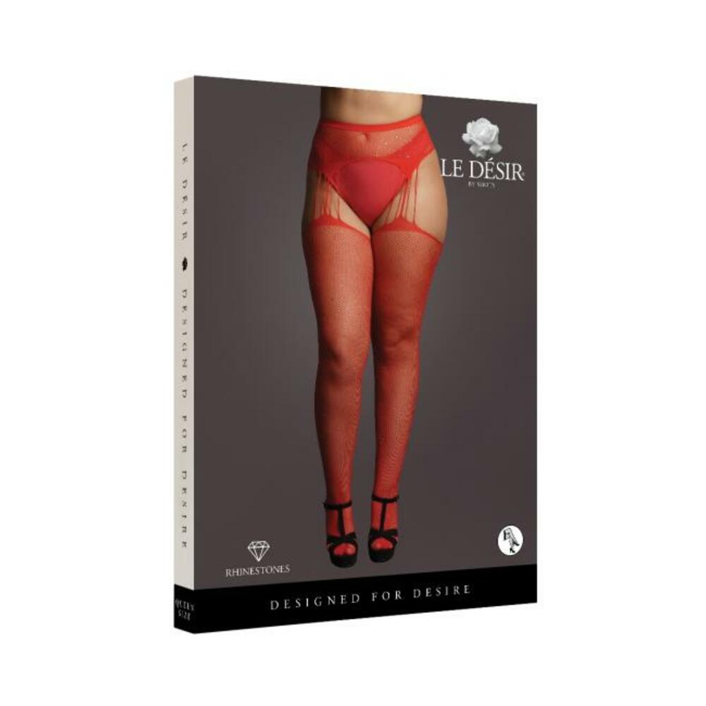 Shots Le Desir Suspender Rhinestone Pantyhose Red Qs