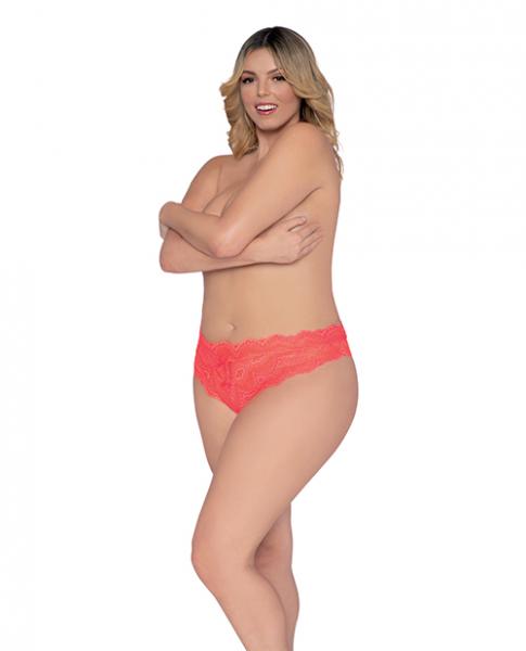 Simply Sexy Lace Tanga Open Crotch Panty Coral 3x
