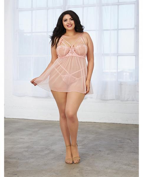Simply Sexy Stretch Shimmer Mesh Chemise W/panty Pink Champagne 1x