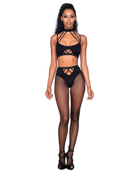 Strappy Bralette & Pantyhose 2pc Black O/s