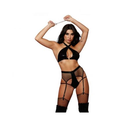 Stretch Faux Leather Fetish Teddy with Halter Ties Black O/S from Dreamgirl International Lingerie. One size fits most 90 pounds to 160 pounds. Care hand wash in cold water. No bleach. Line dry. Comfy meets sexy. Make a statement in sexy loungewear and cozy sleepwear accented with delicate lace fabrics, embroidery and more. Categories Fetish Teddy: Lingerie, Clothing, Teddy, Women’s Sleepwear, Naughty Role Play, Xmas items. Please note boots shown, are not included. Restricted, Amazon Restricted. 2022.