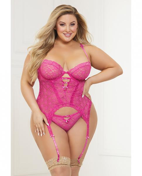Stretch Floral Lace Bustier & G-string Fuchsia Qn