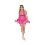Simply Sexy Scalloped Stretch Lace and Mesh Halter T-Back Babydoll Paradise Pink Q/S from Dreamgirl Lingerie. Ladies sizes: 16 to 20. Cups D/DD. Bust 40 inches to 54 inches. Waist 36 inches to 44 inches. Hips 42 inches to 56 inches. Weighing 165 pounds to 275 pounds. You are going to want to leave the lights on for these styles Dreamgirl’s 2022 collection is filled with elegantly seductive styles fit for every body. From delicate embroidery to sultry lace and satin details, this collection carries pieces that will surely help you steal the show. Care instructions: hand wash with cold water. No bleach. Line dry. Imported. Dreamgirl Lingerie – Babydoll. Comfy meets sexy. Make a statement in sexy loungewear and cozy sleepwear accented with delicate lace fabrics, embroidery, and more. Last image is a size chart for Dreamgirl International. Categories: Lingerie, Clothing, Babydolls & Slips, Plus Size, Sleep & Lounge. 2022.