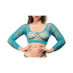 Turquoise crotchless fishnet/mesh with detailed side panel legging Can also be worn as a crop top One size fits most 92% Nylon 8% Spandex Hand wash Drip dry
