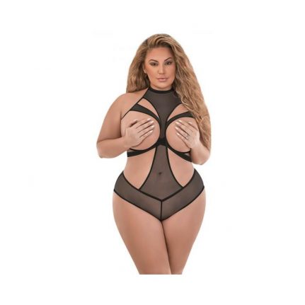 Floral Printed Mesh Halter Top with Ruffle Detail and Matching Thong Panty Brand: Vixen Materials: 95% Polyester, 5% Spandex Color: Black L/XL Size: 10-14 Bust: 38″-42″ Hips: 38″-49″