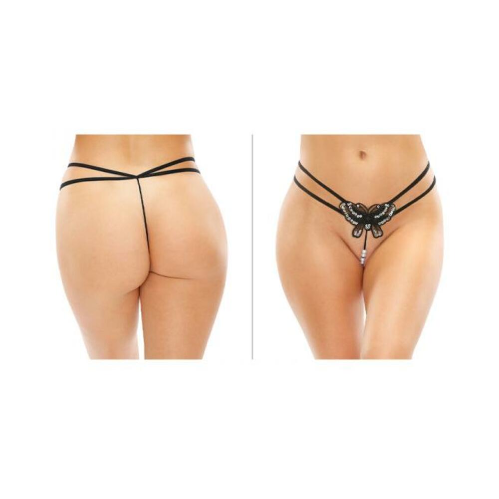 Zinnia Sequin Butterfly Strappy Pearl G-string Black L/xl